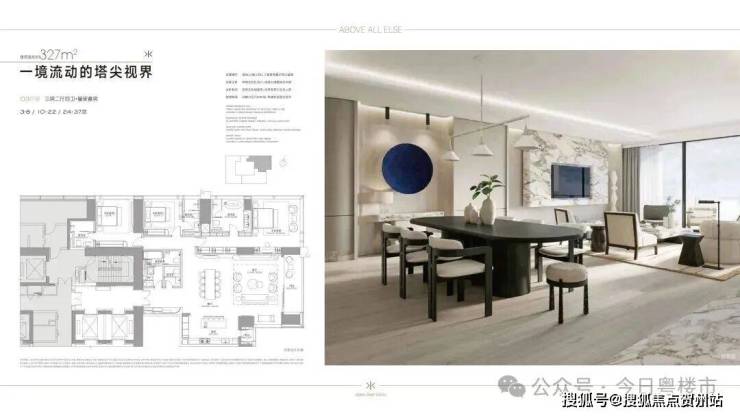 公寓主力户型为304㎡、327㎡、402㎡、570㎡以及1032㎡,公寓层高3.6米,低区5T3,高区5T2。
