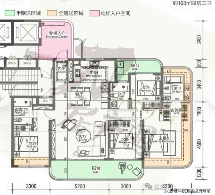 2. 168-193㎡四房三卫(2梯2户/3梯3户,适配进阶改善家庭)