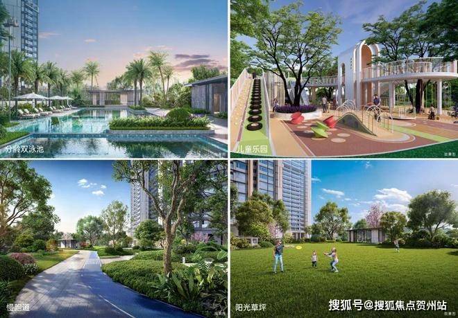 打造约380㎡分龄双泳池、约630㎡儿童乐园、约600米慢跑道、约950㎡阳光草坪四大活力聚场,五大主题社区会客厅,重塑生活新场景。