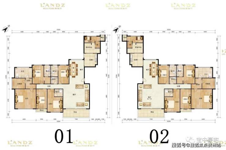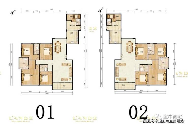 4房(2套房),客厅开间达到6.1米,实际得房率可达95%,不管是得房率还是产品尺度在同类型产品中都占有较大优势。