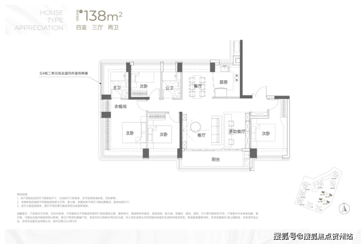 ⑥【一步到位性价比王牌 前海改善头等舱】4栋建面约138㎡奢阔山居范本:LDKB一体化,增配多功能厅、最大约15.5米南向四开间、约6m宽境阳台、主卧270°巨幕飘窗带独立卫浴及衣帽间、最高约94%拓展后综合使用率