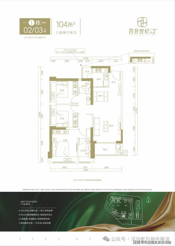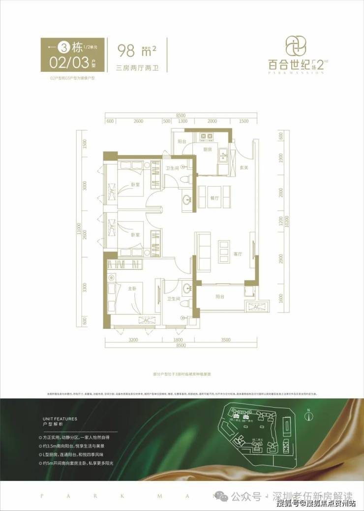 关于二期:这次推售百合世纪广场二期(B-02地块),总占地面积约3.6万㎡,总建筑面积约27.03万㎡,计容建筑面积约19.38万㎡,共由3栋7个单元组成,总高是31-48层的住宅
