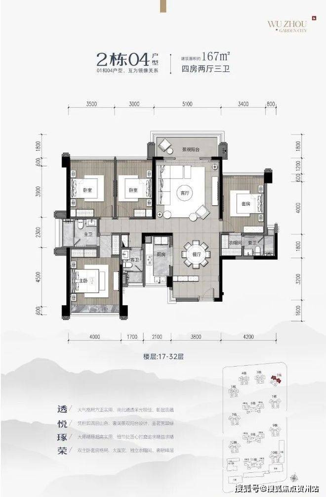 以下为2栋17-32层户型图