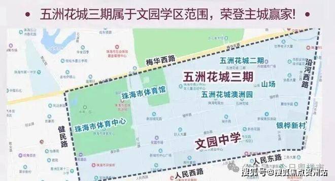 香山学校就在五洲花城二期对面,虽然不是能稳居珠海第一档的小学,但也是前列了。即将开建的文园小学位于五洲花城三期对面。