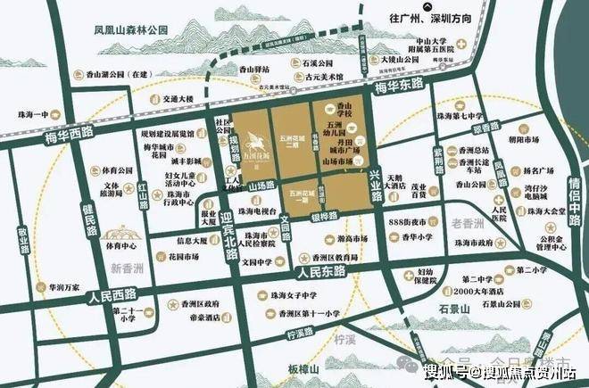 1.地段优势:位于珠海主城香洲区,毗邻香山湖公园,周边配套成熟(商业、学校、医疗等资源丰富),交通便利(临近主干道),兼具城市繁华与居住便利性。