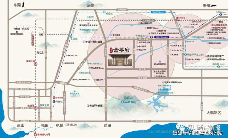 金尊府位于 坪山高铁站的南侧约3.3公里