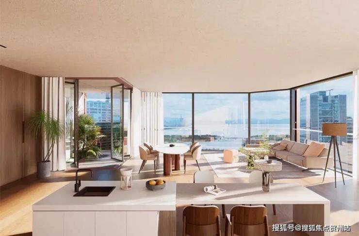 超高层观景面采用落地玻璃,深圳湾视野开阔,无需阳台即可观赏海景。