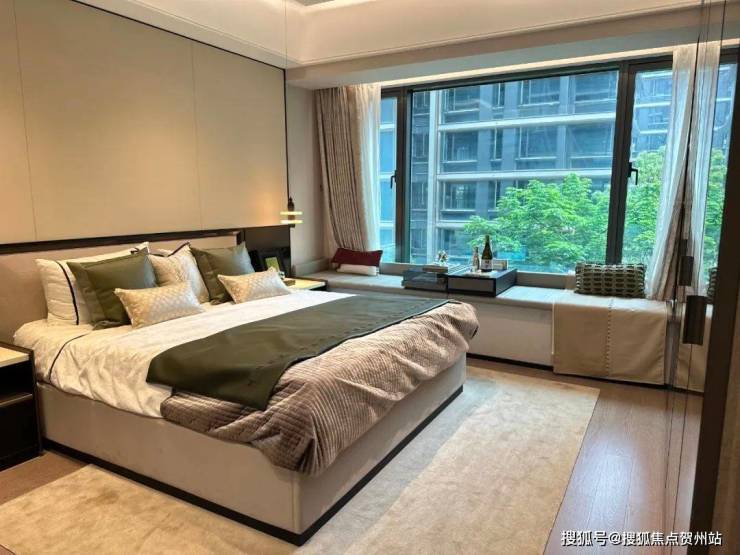 低密洋房:建面约143-169㎡五房,一梯一户设计,三开间朝南,主卧配备270°转角飘窗及步入式衣帽间,得房率超85%。