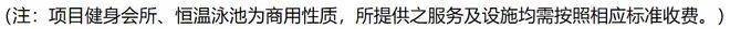 【高端会所 尊崇享受】 引入约1500㎡融合健身、休闲、社交等功能的高端商业健身会所,配置高标准室内恒温泳池,缔造城芯尊崇生活。