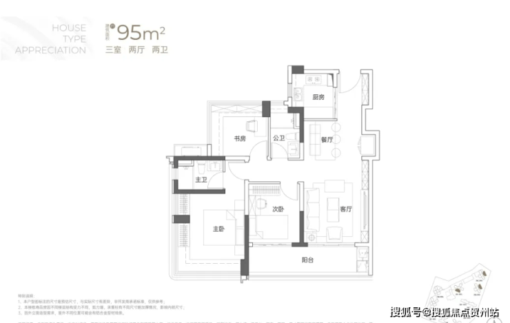 东南或西南朝向以及西北朝向,有3种户型格局,但整体差异并不大,都是横厅设计,阳台也都非常宽敞。主要核心区别是阳台的设计,这应该是为了贴合楼栋朝向、景观所做的调整。