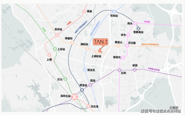 交通配套:项目周边靠近布龙路,五和大道,珠三角环线高速等交通要道,家门口就有25号地铁线“上油松站”在建,深惠城际“民治北站”距离约2公里,目前距离最近的10号地铁线“坂田北站”距离约1.7公里。