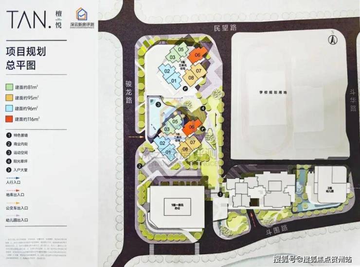 檀悦府,项目原先是水斗新围山嘴头工业区城市更新,总占地面积约1.6万㎡,总建筑面积约19万㎡,计容建筑面积约14.1万㎡,容积率8.3,绿化率40.12%,共由4栋32-47层高住宅+1栋33层办公组成,其中1栋1单元办公33F,1栋2/3单元商品房47F,1栋4单元住宅32F,1栋5单元住宅46F,2栋配建1所6班制幼儿园。