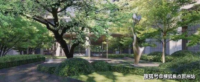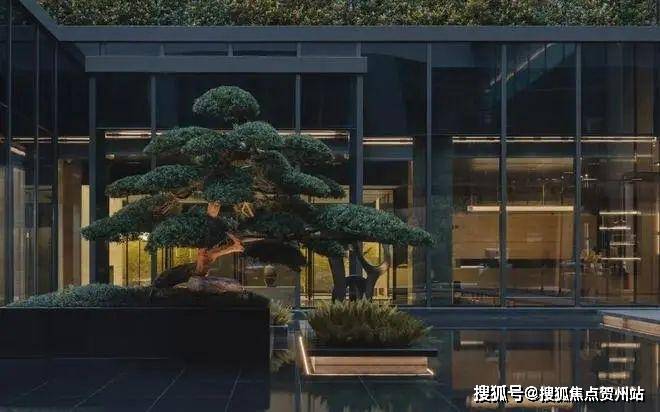 入口50米横向面宽,近6米的高跌水景墙与双层门楼让回家有了一份尊贵与隐奢;随着动线穿林,见山,伴水,来到模仿山石色调与铜色金属融合打造的酒店式大堂,一路草木清香、青石铺地、水系流动,自然的隐奢之美扑面而来。