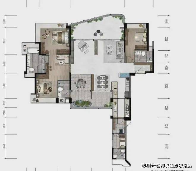 约135㎡尊享约7.4米转角阳台三面巨幕房