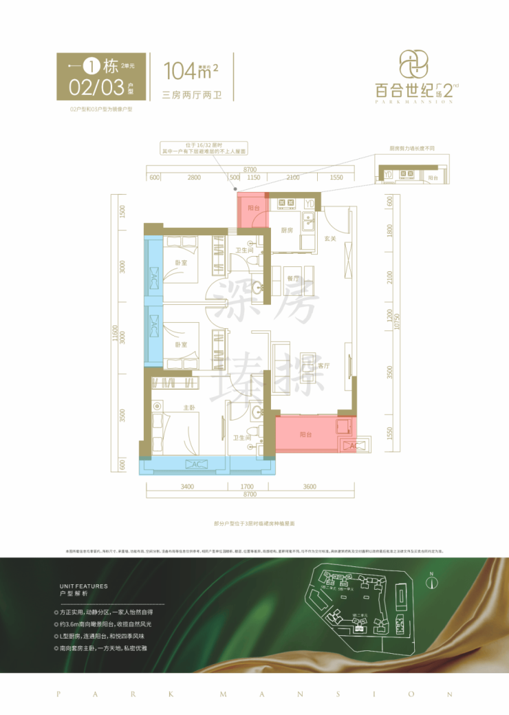 这次准备推售百合世纪广场二期(B-02地块),总占地面积约3.6万㎡,总建筑面积约27.03万㎡,计容建筑面积约19.38万㎡,容积率5.38,绿化率40%,共由3栋7个单元组成,总高是31-48层的住宅,其中1栋1单元住宅42F,1栋2单元住宅47F,2栋1单元住宅46F,2栋4/5单元住宅48F,3栋1/2单元住宅31F,另外2栋2单元公寓30F,2栋3单元商务办公楼22F,4栋是1所九班制幼儿园。