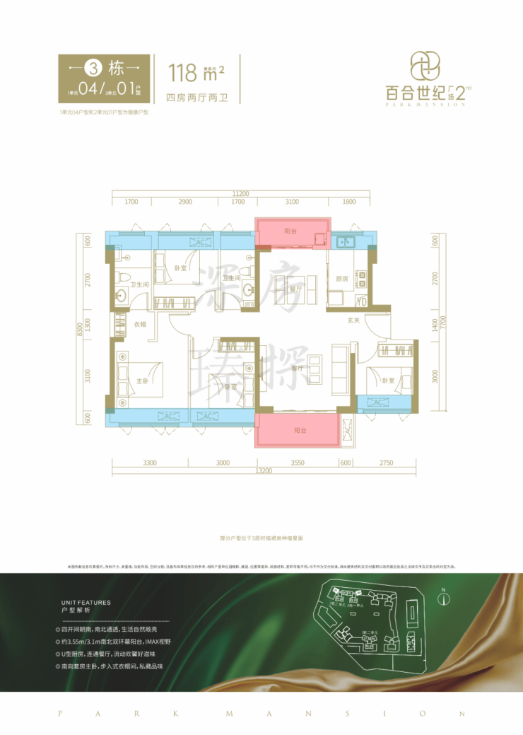 百合世纪广场,总占地面积约4.8万㎡,总规划建筑面积约36万㎡,容积率5.9,绿化率40%,分2个地块开发,总规划有2218户,其中保障房473户,共由8栋总高31-48层的住宅组成,其中涵盖住宅、商业、公寓、办公及教育配套,体现多元化产业布局。