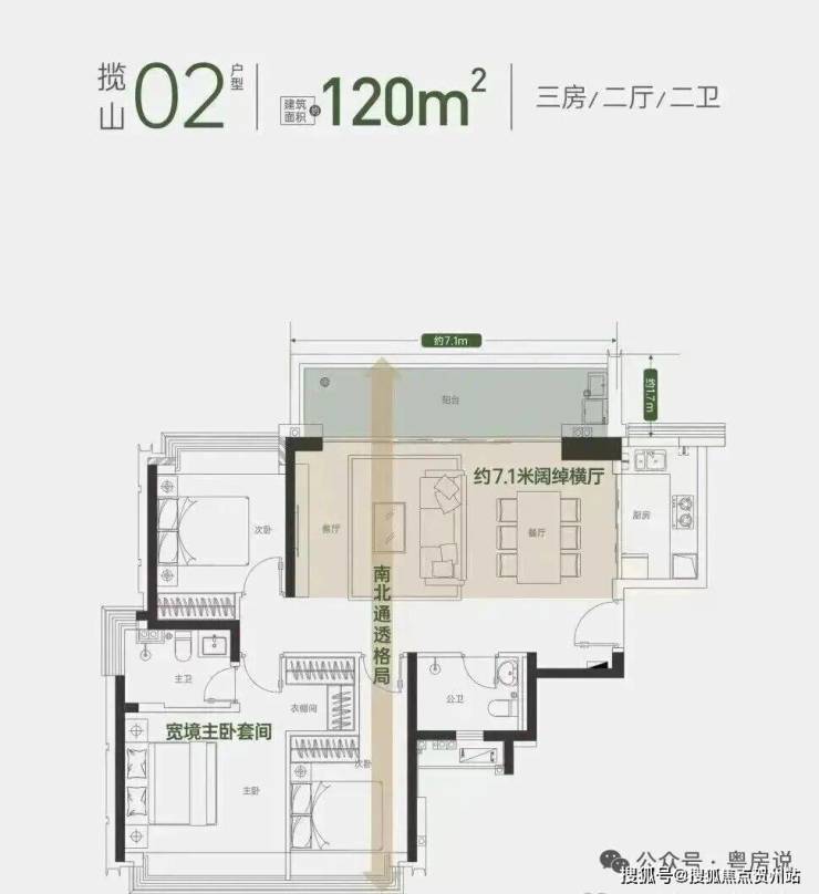 120平横厅3房2卫,揽山美宅;7.1*1.5米大阳台,与山无界对望,总价950万起