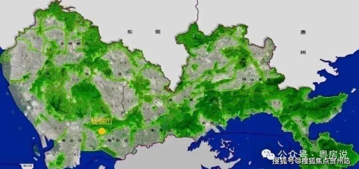 中心区域:深圳山海城中轴,左手香蜜湖、右手华侨城,六大总部基地环伺