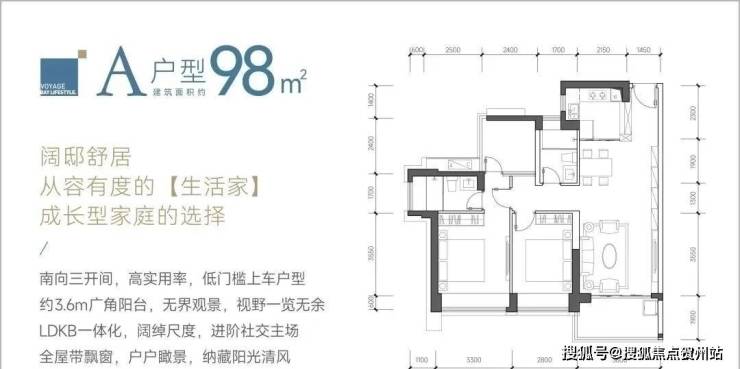 98㎡的3房2厅2卫,设计的是经典竖厅格局,LDKB一体化设计,客厅3.6米开间,三开间朝南,动静分区,3个卧室分别做到了主卧13.69㎡/次卧11.62㎡/次卧5.76㎡(包含墙体飘窗),都不用搭配飘窗做床,L型厨房,卫生间干湿分离,得房率约:89%(包含赠送),西南、东南或正南朝向。