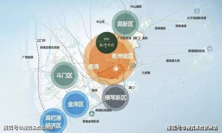 ▫️南湾位居珠海地理几何中心,东面一桥之隔即为香洲老城区,南面与横琴粤澳深度合作区、十字门中央商务区一山之隔;西面规划鹤州新中心;