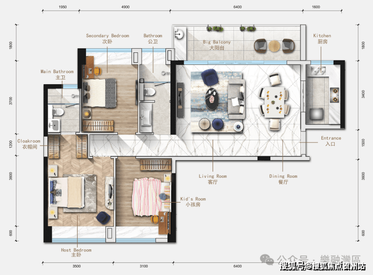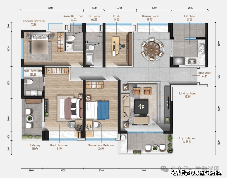 总层高:4,6栋为31层高;5栋为29层高。1楼全部为架空层