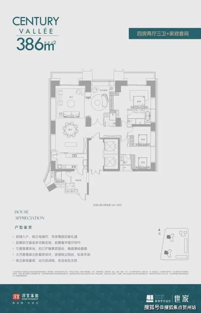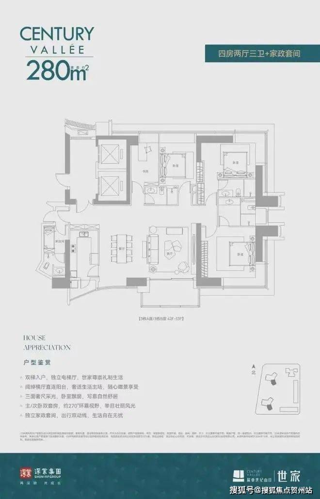 深业世纪山谷前两次都是公寓,现在住宅首发!还是定位相当高端的纯大平层,8梯3户,240㎡/280㎡配备两个独立电梯,380㎡双梯设计,实在任性!