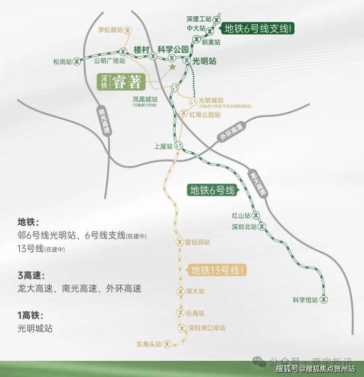 3地铁:邻6号线光明站、6号线支线 (在建中)、13号线 (在建中)