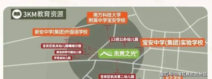 项目内自建幼儿园,3km内南方科技大学附属中学宝安学校(在建中)、宝安中学(集团)实验学校、新安中学(集团)外国语学校、曦城协同学校等学府汇聚