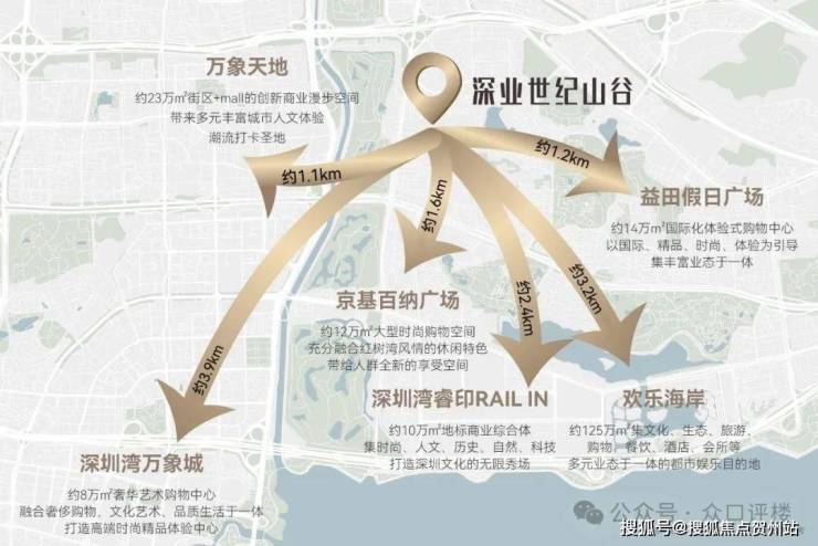 六大高端商圈环伺:位于深圳大型高端商业集中地,周边商圈包括益田假日广场、万象天地、京基百纳广场、深圳湾睿印、欢乐海岸、深圳湾万象城等商业。