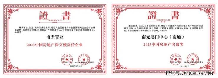 同时,南光置业积极履行央企责任,努力监管及促进合作项目完美交付,全力保障业主权益。于2024年初,在“2024中国房地产年度趋势论坛暨CIHAF第二十四届中国住交会”上再获2023中国房地产保交楼责任企业、2023中国房地产名盘奖(南通南光澳门中心)两项荣誉。