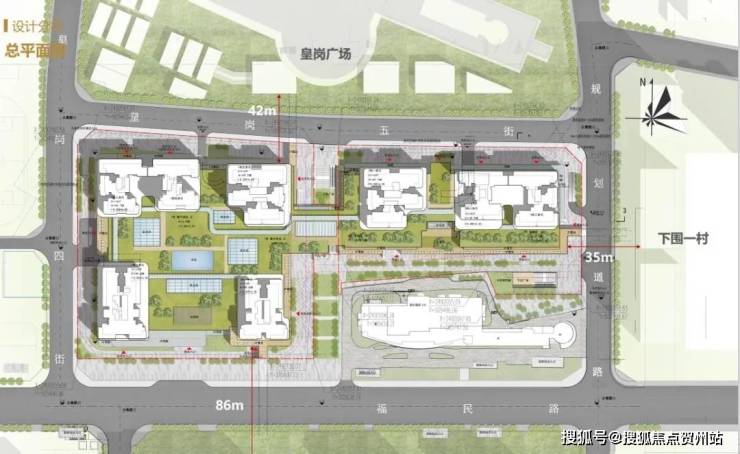 项目一期由福民路、皇岗二街、皇岗四街、皇岗五街围合而成,总占地面积约3.14万㎡,总建筑面积约27.3万㎡,住宅建面约为20.3万㎡,商业建面约为7万㎡;整个项目以“立于城市中轴,缔造时代标杆”为核心理念,旨在构建一个融合现代与历史人文特色的城市大综合体。