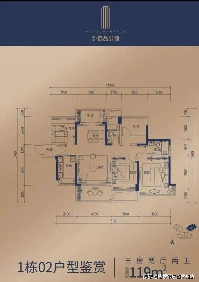 1栋02单位 119㎡三房两厅两卫