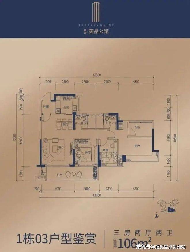 1栋03单位 106㎡三房两厅两卫
