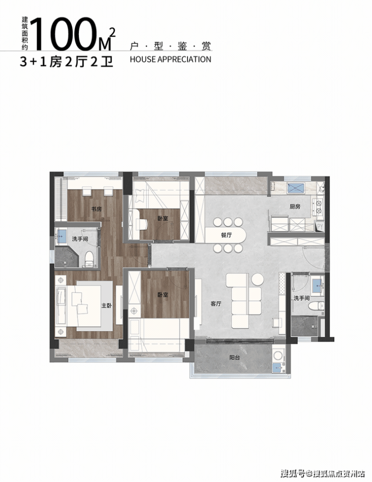 主力户型:84-110㎡三至四房,涵盖 84㎡三房两厅两卫、88㎡三房两厅两卫、94㎡三房两厅两卫、101㎡四房两厅两卫,全南向布局,LDKG 一体化设计,部分户型南北通透。