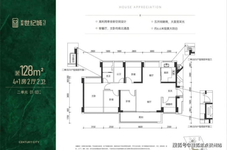 128㎡的5房2厅2卫,设计的是竖厅南北通透格局,客厅4米开间,客餐厅分离设计,全屋9面飘窗,五开间朝南,4个卧室分别做到了主卧18.01㎡/次卧8.96㎡/次卧8.58㎡/次卧8.42㎡/次卧5.52㎡(包含墙体飘窗),U型厨房,卫生间干湿分离,阳台11.22㎡主朝西南或正南向。得房率约92.8㎡(包含赠送),赠送面积有23.69㎡。