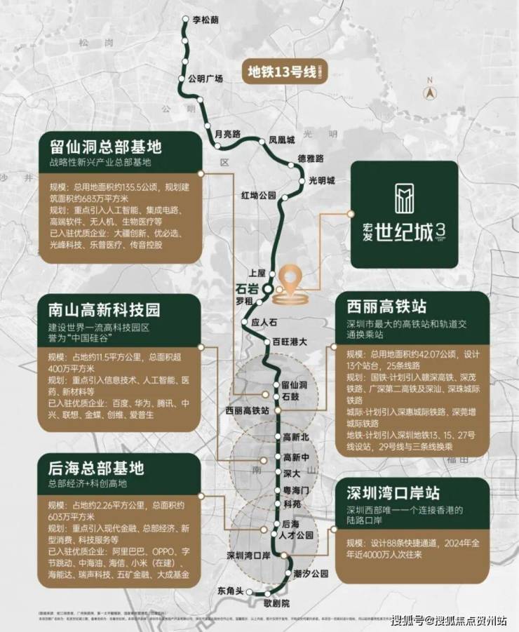 13号线一期据深圳交通局官网称将在2025年年底前开通,该线路也是深圳3条快线之一,号称“深圳科技核心大动脉”,从南到北,串联深圳湾总部基地、后海中心、南山科技园、西丽高铁枢纽、留仙洞总部基地、白芒科研机构、宝安石岩科创城等多个重要片区。沿线华为、中国电子、腾讯、阿里等500强汇集,大批高新人才聚集,形成科创阵地,势必引领片区经济崛起。全程时速120公里,3站到南山百旺港大站,4站到南山西丽高铁站,7站到高新北。