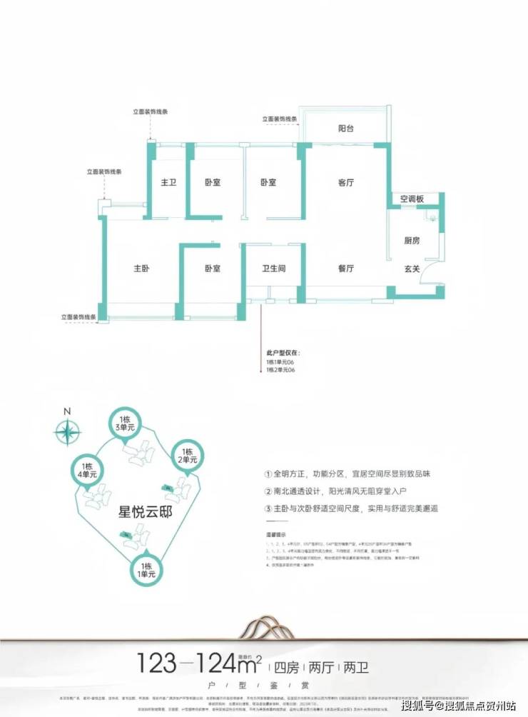 主力产品面积:建面约95-124㎡3-4房