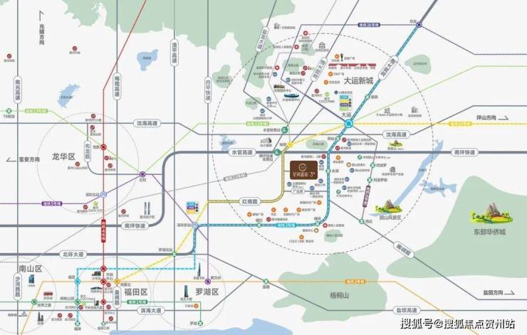 商业配套:项目自带底商,约1.5公里范围内还有天虹商场,荣超购物中心(内有大型沃尔玛商超),约2公里内有金沙摩尔,新世界购物广场,横岗ONE等商业体;在大运还有星河coco park(内有山姆会员店),华润大运天地(北区)已经开业。