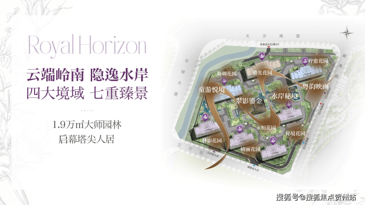 项目园林规划建设约300㎡水院、约600㎡镜面水景、约2000㎡水岸会客厅等景观及休闲空间,融入了镬耳屋、满洲窗棂等岭南元素。