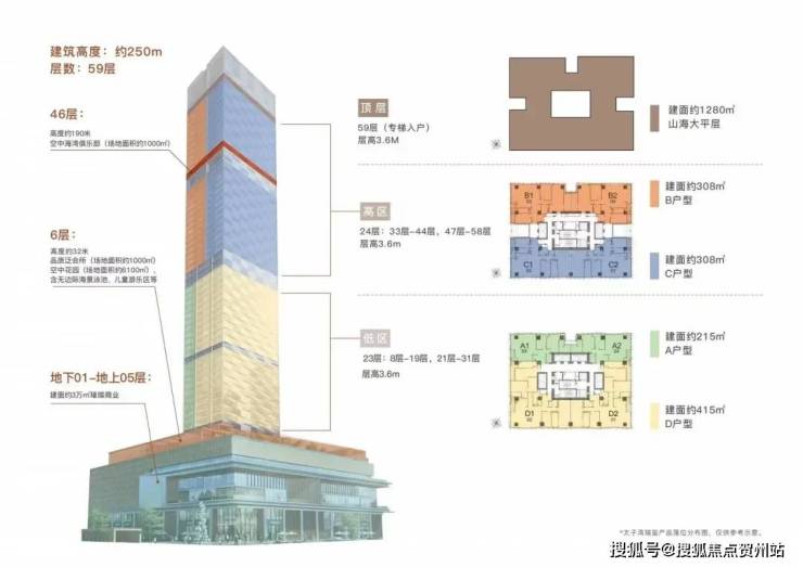 面积:215㎡2房2卫,306-311㎡3房2厅3卫,415㎡4房3厅5卫,顶层1270㎡大平层可做6-8房
