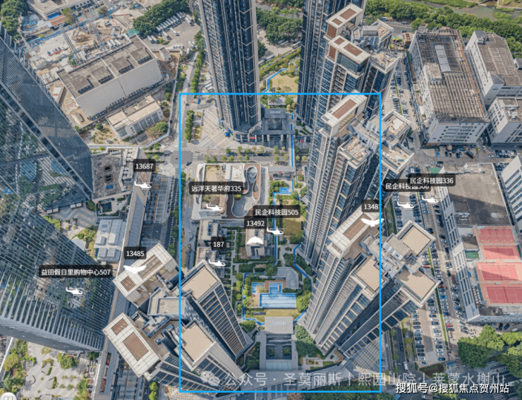 建筑设计:超高层点式围合,中心大花园,采光通风均衡