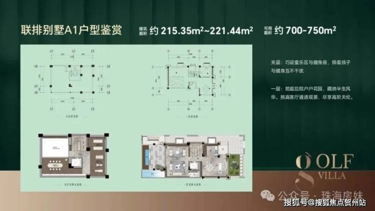 🔺联排别墅A1户型:建筑面积约210-221.44㎡,可用面积约700-750㎡