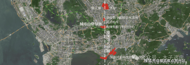 (1)港深科创中轴,串联五大产业总部基地