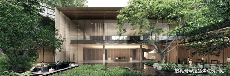 舒朗的水平線條,選用大面積通透玻璃幕墻和暖灰色鋁闆