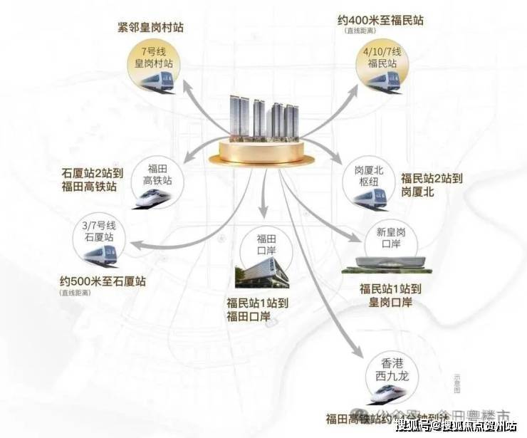 地铁网络: 项目紧邻地铁7号线皇岗村站(项目已预留接口),步行可达4/10号线福民站,3号线石厦站,享受4条地铁线环绕的便捷。