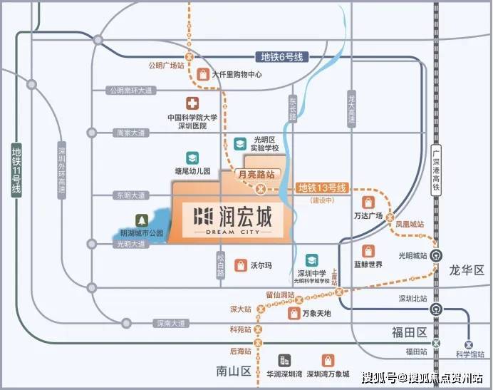 润宏城位于深圳市光明区凤凰街道13号线二期月亮路站旁,由华润置地和宏发集团联合打造,整体规划约382万㎡超大体量城市综合体,集轨道交通、优质教育、城市公园、创新产业、品质居住于一体,打造“宜居、宜业、宜游”都市生态标杆大城。