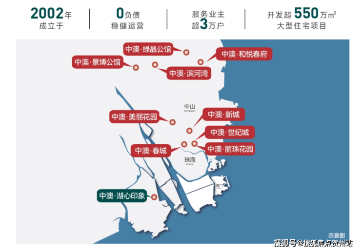 中澳集团2002年成立,以中山为核心辐射珠三角,23年开发经验,成功打造中澳春城、中澳世纪城等超550万㎡标杆住宅,服务业主超2万户,土地储备超160万㎡,本土口碑与规模兼具。