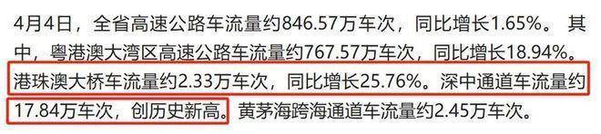 我记得开通前有一些观点对深中通道的车流量表示担忧,而我测算了这个A字型出海口各条大桥之间的距离之后非常乐观。最新清明节的数字显示:深中通道车流量已经达到约17.84万车次,创历史新高。而港珠澳大桥呢?车流量约2.33万车次,前者已经攀升至后者的7.7倍。