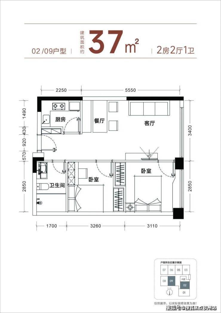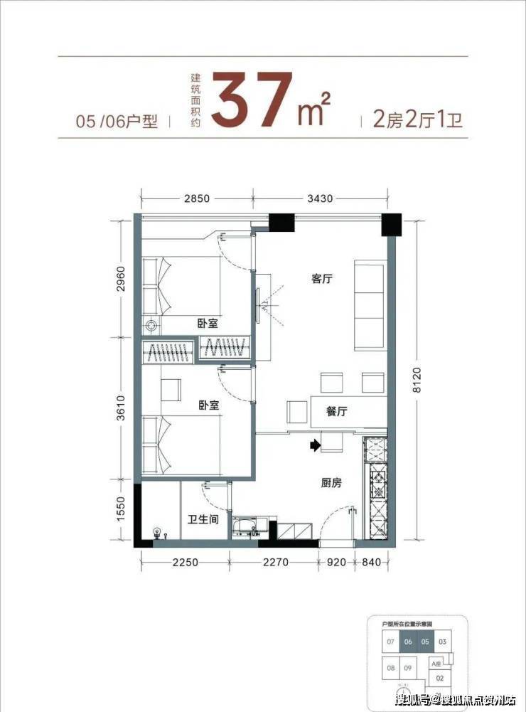 【产品面积】约37㎡小两房(实际套内使用面积接近54㎡)