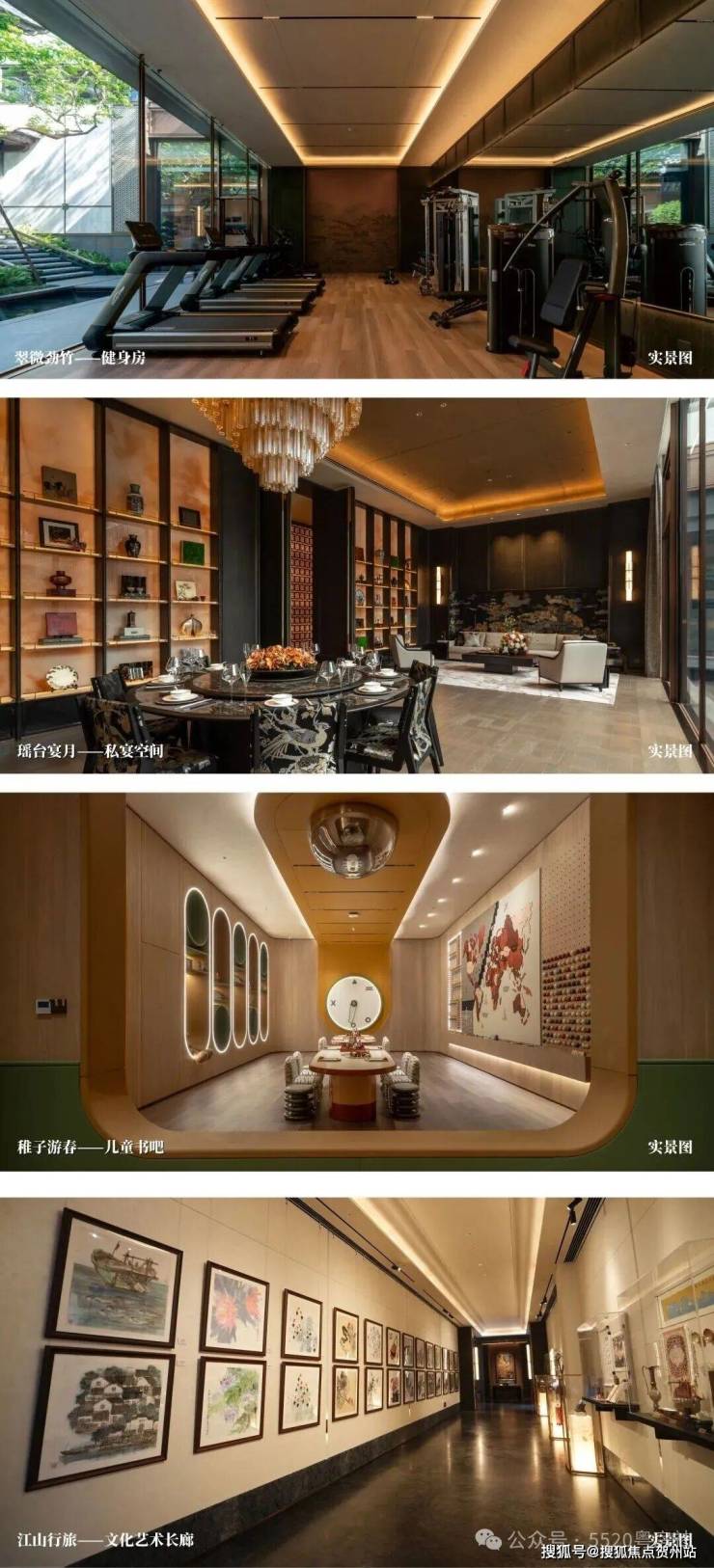 约2000㎡下沉式会所,集青峦煮雪——茶室、翠微劲竹——健身房、瑶台宴月——私宴空间等空间于一体,与稚子游春——儿童书吧形成全龄段休闲矩阵。更携手广东省中国画学会等权威机构,将江山行旅-文化艺术长廊打造成包含文化讲坛、珍品展陈的国学交流基地。